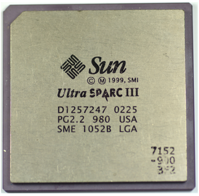 The Sun UltraSPARC III is a server/workstation CPU from Sun Microsystems based on the 64-bit SPARC V9 architecture, designed for highly scalable multiprocessor systems. It implements the VIS instruction set to accelerate vector/multimedia-style operations and integrates advanced RAS capabilities typical of enterprise platforms.