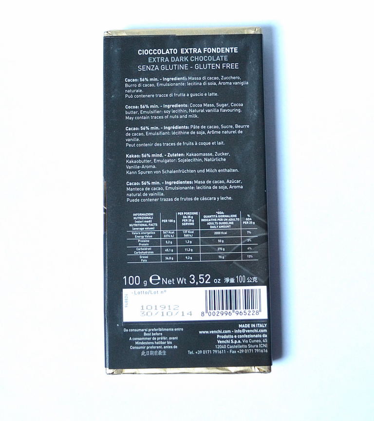 Barcode EAN:   8002996965228 Energy kcal/100g:   547 Satured Fat (per 100g)g:   Sugar into Carbohydrates (per 100g)g:   Proteines (per 100g)g:   5.2 Calcium CA/ mg (per 100g)g:   Gluten:   Production type:   Made in:   Italy Price €:   Bought here:   Last update:   2012-12-16 12:34:39 | Brand:   Fat (per 100g)g:   36.8 Carbohydrates (per 100g)g:   45.1 Fiber (per 100g)g:   Salt - Sodium (per 100g)g:   Ingredients (Indicative):   |