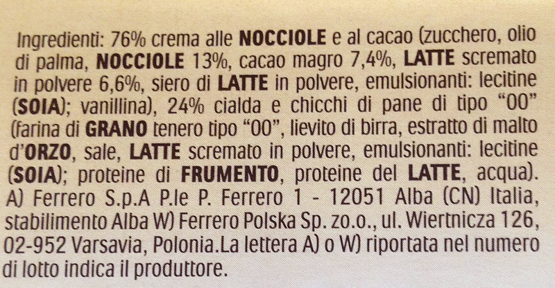 Barcode EAN:   8000500142035 Energy kcal/100g:   502 Satured Fat (per 100g)g:   8.4 Sugar into Carbohydrates (per 100g)g:   44.6 Proteines (per 100g)g:   8.3 Calcium CA/ mg (per 100g)g:   Gluten:   Production type:   Made in:   Poland Price €:   Bought here:   Last update:   2016-08-31 17:09:11 | Brand:   Fat (per 100g)g:   24.1 Carbohydrates (per 100g)g:   60.9 Fiber (per 100g)g:   Salt - Sodium (per 100g)g:   0.608 Ingredients (Indicative):   |