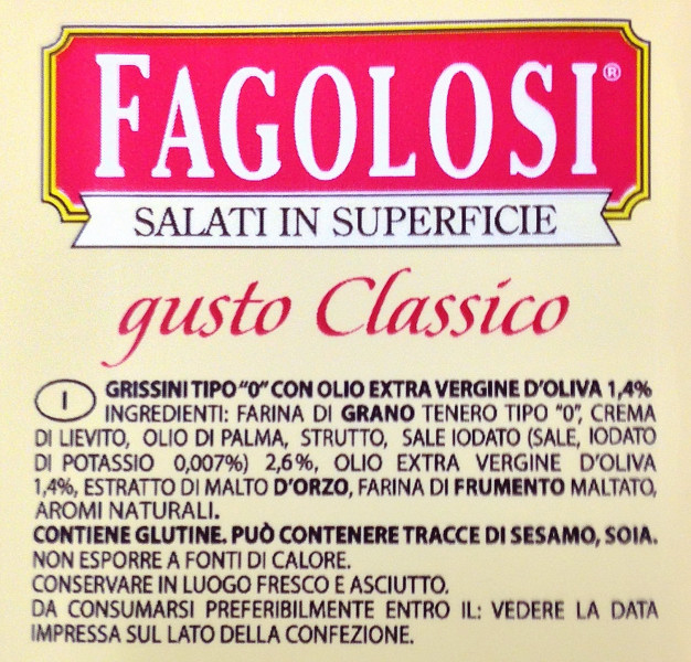 Barcode EAN:   8001405015608 Energy kcal/100g:   417 Satured Fat (per 100g)g:   1.8 Sugar into Carbohydrates (per 100g)g:   1.9 Proteines (per 100g)g:   10 Calcium CA/ mg (per 100g)g:   Gluten:   Production type:   Made in:   Italy Price €:   Bought here:   Last update:   2017-11-05 17:34:24 | Brand:   Fat (per 100g)g:   9.7 Carbohydrates (per 100g)g:   71 Fiber (per 100g)g:   2.4 Salt - Sodium (per 100g)g:   2.5 Ingredients (Indicative):   |