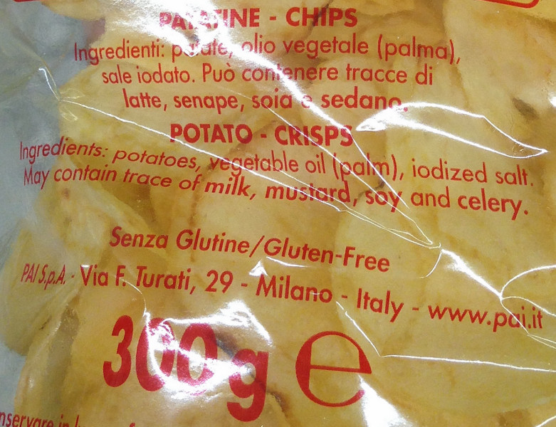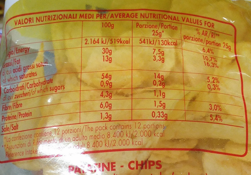 Barcode EAN:   8041790505179 Energy kcal/100g:   519 Satured Fat (per 100g)g:   13 Sugar into Carbohydrates (per 100g)g:   0.9 Proteines (per 100g)g:   1.3 Calcium CA/ mg (per 100g)g:   Gluten:   Production type:   Made in:   Italy Price €:   Last update:   2016-10-01 11:35:03 | Brand:   Fat (per 100g)g:   30 Carbohydrates (per 100g)g:   54 Fiber (per 100g)g:   6 Salt - Sodium (per 100g)g:   Ingredients (Indicative):   Bought here:   |