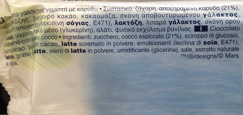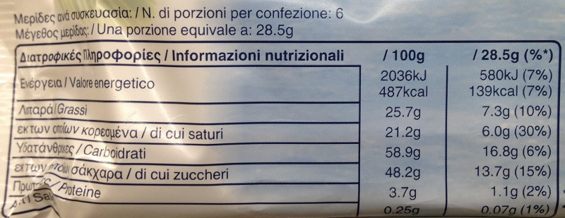 Barcode EAN:   5000159461696 Energy kcal/100g:   487 Satured Fat (per 100g)g:   21.2 Sugar into Carbohydrates (per 100g)g:   48.2 Proteines (per 100g)g:   3.7 Calcium CA/ mg (per 100g)g:   Gluten:   Production type:   Made in:   Price €:   Bought here:   Last update:   2016-10-13 16:18:24 | Brand:   Fat (per 100g)g:   25.7 Carbohydrates (per 100g)g:   58.9 Fiber (per 100g)g:   Salt - Sodium (per 100g)g:   0.25 Ingredients (Indicative):   |