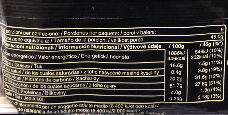 Barcode EAN:   5000159441988 Energy kcal/100g:   449 Satured Fat (per 100g)g:   8.4 Sugar into Carbohydrates (per 100g)g:   61.7 Proteines (per 100g)g:   4 Calcium CA/ mg (per 100g)g:   Gluten:   Production type:   Made in:   Netherlands Price €:   Bought here:   Last update:   2016-10-14 10:47:29 | Brand:   Fat (per 100g)g:   16.6 Carbohydrates (per 100g)g:   70.2 Fiber (per 100g)g:   Salt - Sodium (per 100g)g:   0.39 Ingredients (Indicative):   |