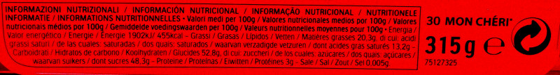 Barcode EAN:   8000500034743 Energy kcal/100g:   455 Satured Fat (per 100g)g:   13.2 Sugar into Carbohydrates (per 100g)g:   48.3 Proteines (per 100g)g:   3 Calcium CA/ mg (per 100g)g:   Gluten:   Production type:   Made in:   Italy Price €:   Bought here:   Last update:   2016-10-14 19:34:19 | Brand:   Fat (per 100g)g:   20.3 Carbohydrates (per 100g)g:   52.8 Fiber (per 100g)g:   Salt - Sodium (per 100g)g:   0.005 Ingredients (Indicative):   |