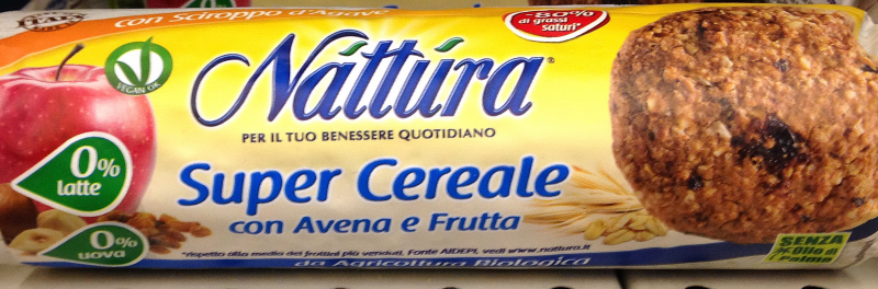 Barcode EAN:   8000003049008 Valore energetico kcal/100g:   466 Grassi saturi nei grassi (per 100g)g:   1.9 Zuccheri nei carboidrati(per 100g)g:   15 Proteine (per 100g)g:   8 Calcio CA/ mg per 100g:   Glutine:   Tipologia di produzione, es. bio:   Prodotto in:   Italia Prezzo indicativo €:   Comprato qui:   Ultimo aggiornamento:   2016-12-27 19:49:32 | Marca:   Grassi (per 100g)g:   19 Carboidrati (per 100g)g:   63 Fibre (per 100g)g:   5 Sale - Sodio (per 100g)g:   0.58 Ingredienti (Indicativo. Quantità decrescenti in etichetta):   |