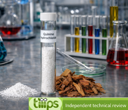 Quinine is historically associated with antimalarial therapy and remains a substance with medically relevant pharmacology. The hydrochloride salt is one of the well-known salified forms used in medicinal contexts. For a cosmetic or technical dossier, the key point is that “medical history” does not translate into cosmetic claims; it mainly informs a conservative approach to safety evaluation, contraindications awareness, and communication discipline.