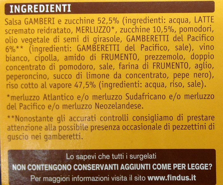 | "Ingredienti semplici" su Findus - 4Salti - Risotto Gamberi e Zucchine 280g Consenso relazione 23 di MGannelly (1318 pt) | 01-gen-2017 10:55 |