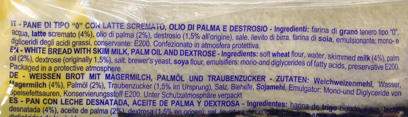 | "Peccato per l'olio di palma" su TREVISAN - Pane per Tramezzini al latte - 250g Consenso relazione 7 di Whiz35 (11982 pt) | 06-feb-2017 18:00 |