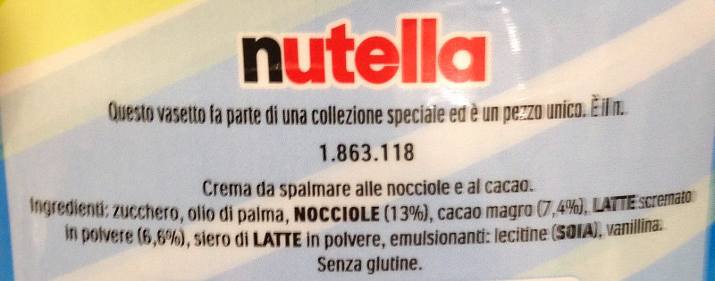 Barcode EAN:   8000500082379 Energy kcal/100g:   546 Satured Fat (per 100g)g:   11 Sugar into Carbohydrates (per 100g)g:   56.8 Proteines (per 100g)g:   6 Calcium CA/ mg (per 100g)g:   Gluten:   Production type:   Made in:   Italy Price €:   Bought here:   Last update:   2017-02-07 19:51:44 | Brand:   Fat (per 100g)g:   31.6 Carbohydrates (per 100g)g:   57.6 Fiber (per 100g)g:   Salt - Sodium (per 100g)g:   0.114 Ingredients (Indicative):   |