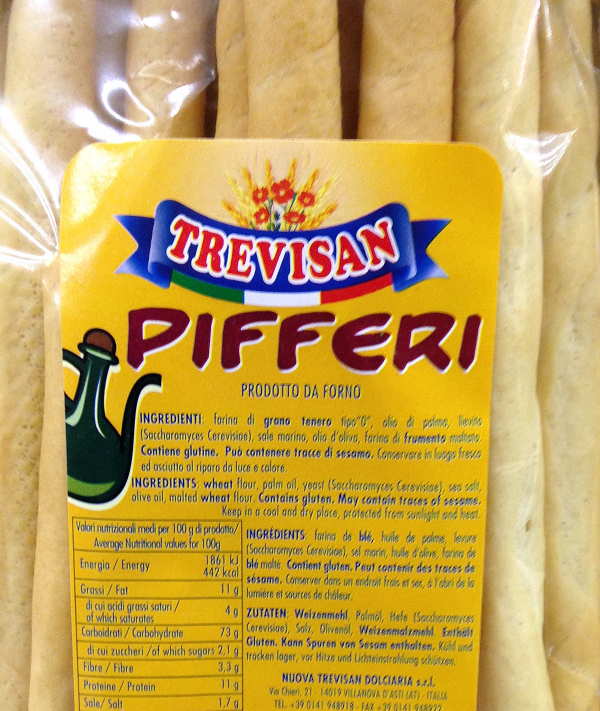 Barcode EAN:   8002234391055 Energy kcal/100g:   442 Satured Fat (per 100g)g:   4 Sugar into Carbohydrates (per 100g)g:   2.1 Proteines (per 100g)g:   11 Calcium CA/ mg (per 100g)g:   Gluten:   Production type:   Made in:   Italy Price €:   Bought here:   Last update:   2017-02-14 16:32:24 | Brand:   Fat (per 100g)g:   11 Carbohydrates (per 100g)g:   73 Fiber (per 100g)g:   3.3 Salt - Sodium (per 100g)g:   1.7 Ingredients (Indicative):   |