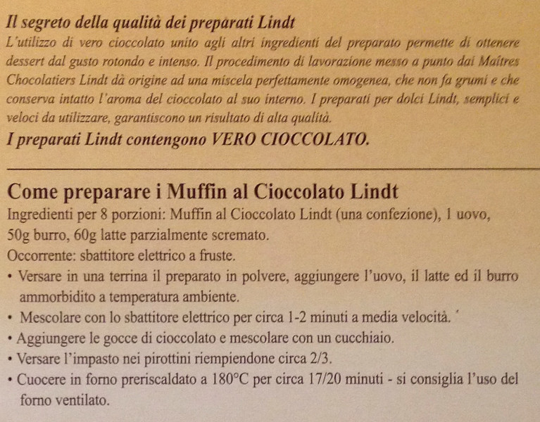 | "Descrizione" about Lindt - MUFFIN AL CIOCCOLATO - 210g Review Consensus 8 by FCS777 (5544 pt) | 2023-Jul-01 11:28 |