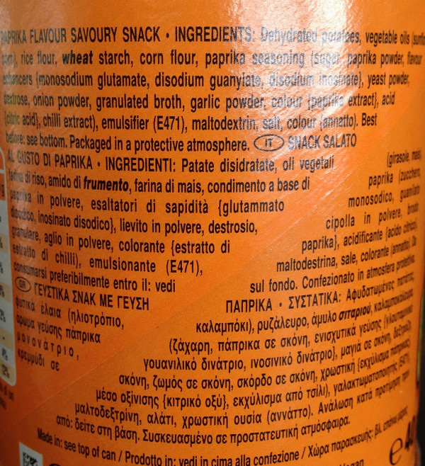 Barcode EAN:   5053990107308 Energy kcal/100g:   501 Satured Fat (per 100g)g:   3.4 Sugar into Carbohydrates (per 100g)g:   4 Proteines (per 100g)g:   4.7 Calcium CA/ mg (per 100g)g:   Gluten:   Production type:   Made in:   United Kingdom Price €:   Bought here:   Last update:   2023-04-24 18:23:27 | Brand:   Fat (per 100g)g:   31 Carbohydrates (per 100g)g:   51 Fiber (per 100g)g:   2.9 Salt - Sodium (per 100g)g:   1.8 Ingredients (Indicative):   |