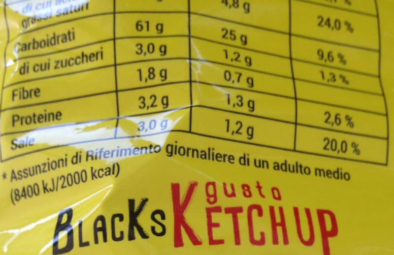 Barcode EAN:   8003130343230 Energy kcal/100g:   512 Satured Fat (per 100g)g:   12 Sugar into Carbohydrates (per 100g)g:   3 Proteines (per 100g)g:   3.2 Calcium CA/ mg (per 100g)g:   Gluten:   Production type:   Made in:   Italy Price €:   Bought here:   Last update:   2017-08-18 16:18:30 | Brand:   Fat (per 100g)g:   28 Carbohydrates (per 100g)g:   61 Fiber (per 100g)g:   1.8 Salt - Sodium (per 100g)g:   3 Ingredients (Indicative):   |