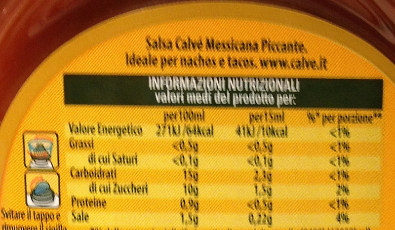 Barcode EAN:   8712100707063 Energy kcal/100g:   64 Satured Fat (per 100g)g:   0.09 Sugar into Carbohydrates (per 100g)g:   10 Proteines (per 100g)g:   0.9 Calcium CA/ mg (per 100g)g:   Gluten:   Production type:   Made in:   Italy Price €:   Bought here:   Last update:   2017-08-25 17:00:20 | Brand:   Fat (per 100g)g:   0.4 Carbohydrates (per 100g)g:   15 Fiber (per 100g)g:   Salt - Sodium (per 100g)g:   1.5 Ingredients (Indicative):   |