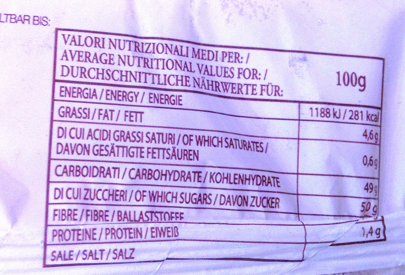 Barcode EAN:   8003130625688 Energy kcal/100g:   281 Satured Fat (per 100g)g:   0.6 Sugar into Carbohydrates (per 100g)g:   5 Proteines (per 100g)g:   Calcium CA/ mg (per 100g)g:   Gluten:   Production type:   Made in:   Italy Price €:   Bought here:   Last update:   2017-08-26 12:14:35 | Brand:   Fat (per 100g)g:   4.6 Carbohydrates (per 100g)g:   49 Fiber (per 100g)g:   Salt - Sodium (per 100g)g:   1.4 Ingredients (Indicative):   |