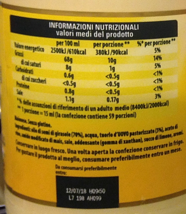 Barcode EAN:   8722700448938 Energy kcal/100g:   610 Satured Fat (per 100g)g:   8 Sugar into Carbohydrates (per 100g)g:   0.4 Proteines (per 100g)g:   0.8 Calcium CA/ mg (per 100g)g:   Gluten:   Production type:   Made in:   Netherlands Price €:   Bought here:   Last update:   2017-09-28 19:44:56 | Brand:   Fat (per 100g)g:   68 Carbohydrates (per 100g)g:   0.6 Fiber (per 100g)g:   Salt - Sodium (per 100g)g:   1.1 Ingredients (Indicative):   |