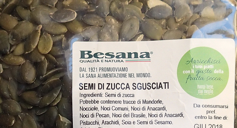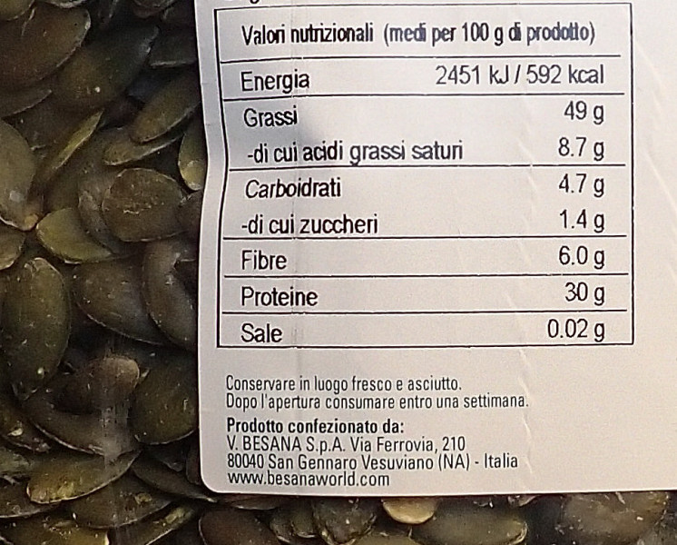 Barcode EAN:   8006860462967 Energy kcal/100g:   592 Satured Fat (per 100g)g:   8.7 Sugar into Carbohydrates (per 100g)g:   1.4 Proteines (per 100g)g:   30 Calcium CA/ mg (per 100g)g:   Gluten:   Made in:   Italy Bought here:   Last update:   2017-11-12 12:05:42 | Brand:   Fat (per 100g)g:   49 Carbohydrates (per 100g)g:   4.7 Fiber (per 100g)g:   6 Salt - Sodium (per 100g)g:   0.02 Ingredients (Indicative):   Production type:   Price €:   |