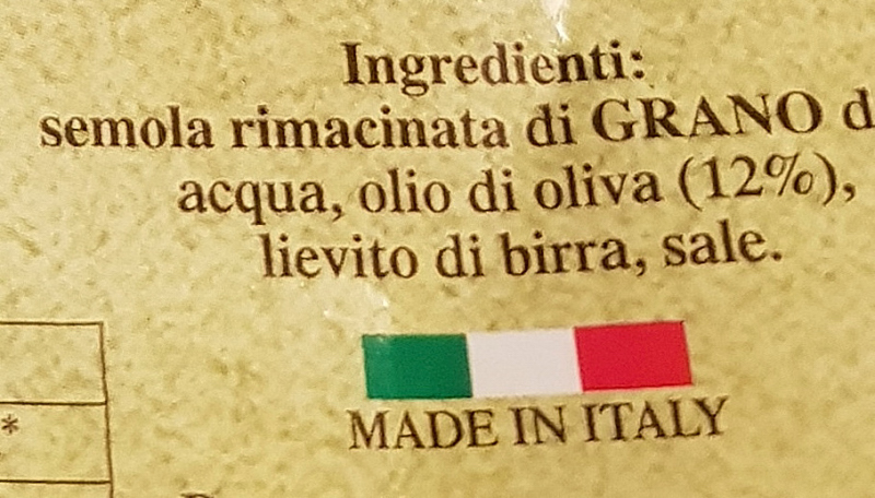 Barcode EAN:   8011194108191 Energy kcal/100g:   443 Satured Fat (per 100g)g:   2.4 Sugar into Carbohydrates (per 100g)g:   1.9 Proteines (per 100g)g:   8.8 Calcium CA/ mg (per 100g)g:   Gluten:   Production type:   Made in:   Italy Price €:   Bought here:   Last update:   2018-01-29 08:52:07 | Brand:   Fat (per 100g)g:   17 Carbohydrates (per 100g)g:   63 Fiber (per 100g)g:   3.2 Salt - Sodium (per 100g)g:   1.3 Ingredients (Indicative):   |