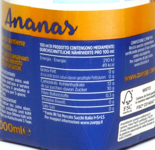 Barcode EAN:   8000340472415 Calories Kcal 100 ml:   49 Saturated fat:   Sugars (in the Carbohydrates):   10 Proteins per 100 ml:   Ingredients:   Production type:   Bought here:   Last update:   2020-04-13 18:24:05 | Brand:   Fat per 100 ml:   Carbohydrates per 100 ml:   12 Fiber per 100 ml:   0.3 Sodium per 100 ml:   Made in:   Italy Price €:   |