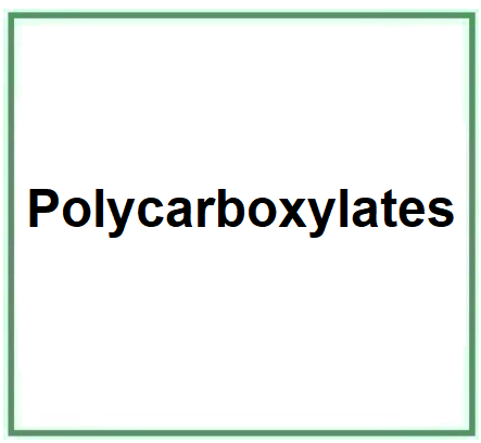 Polycarboxylates are polymers that contain many carboxylated groups. In the context of detergents, they are often used as to improve the cleaning efficiency of the detergent. In concrete, they are used as superplasticizers, to reduce the water content while maintaining the workability of concrete. In personal care products, they can work as thickeners or emulsion stabilizers.