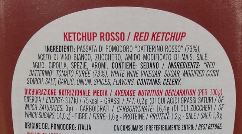 Barcode EAN:   8017995200928 Energy kcal/100g:   75 Satured Fat (per 100g)g:   0 Sugar into Carbohydrates (per 100g)g:   14 Proteines (per 100g)g:   1.2 Calcium CA/ mg (per 100g)g:   Gluten:   Production type:   Made in:   Italy Price €:   Bought here:   Last update:   2018-08-30 18:13:51 | Brand:   Fat (per 100g)g:   0.2 Carbohydrates (per 100g)g:   16.4 Fiber (per 100g)g:   1.6 Salt - Sodium (per 100g)g:   1.8 Ingredients (Indicative):   |