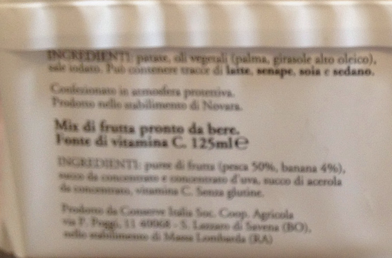 Barcode EAN:   8003130043741 Energy kcal/100g:   502 Satured Fat (per 100g)g:   9.4 Sugar into Carbohydrates (per 100g)g:   12.8 Proteines (per 100g)g:   6.3 Calcium CA/ mg (per 100g)g:   Gluten:   Production type:   Made in:   Italy Price €:   Bought here:   Last update:   2018-10-07 10:55:48 | Brand:   Fat (per 100g)g:   27 Carbohydrates (per 100g)g:   56.3 Fiber (per 100g)g:   4.5 Salt - Sodium (per 100g)g:   1.3 Ingredients (Indicative):   |