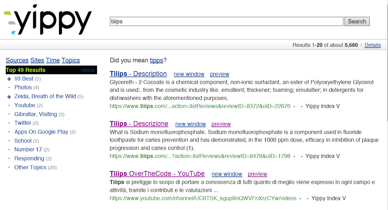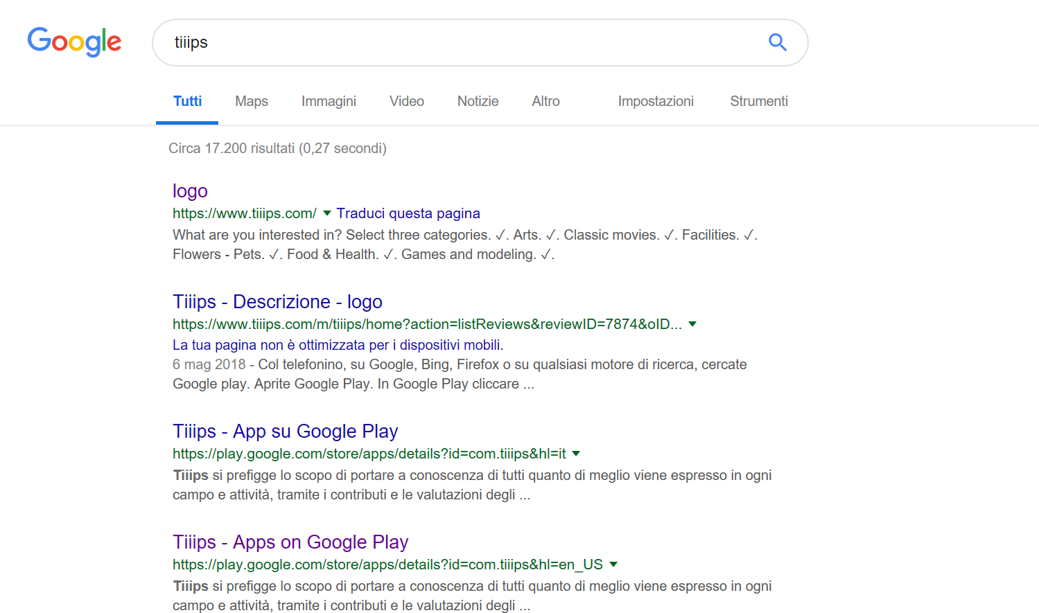 and checked, in the first 50 results, those that referred to the site www.tiiips.com