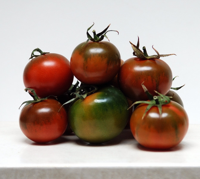 Fleshy berry grown in many eco-types/cultivars (round slicers, Roma/plum, cherry/grape, ribbed, oxheart, etc.).