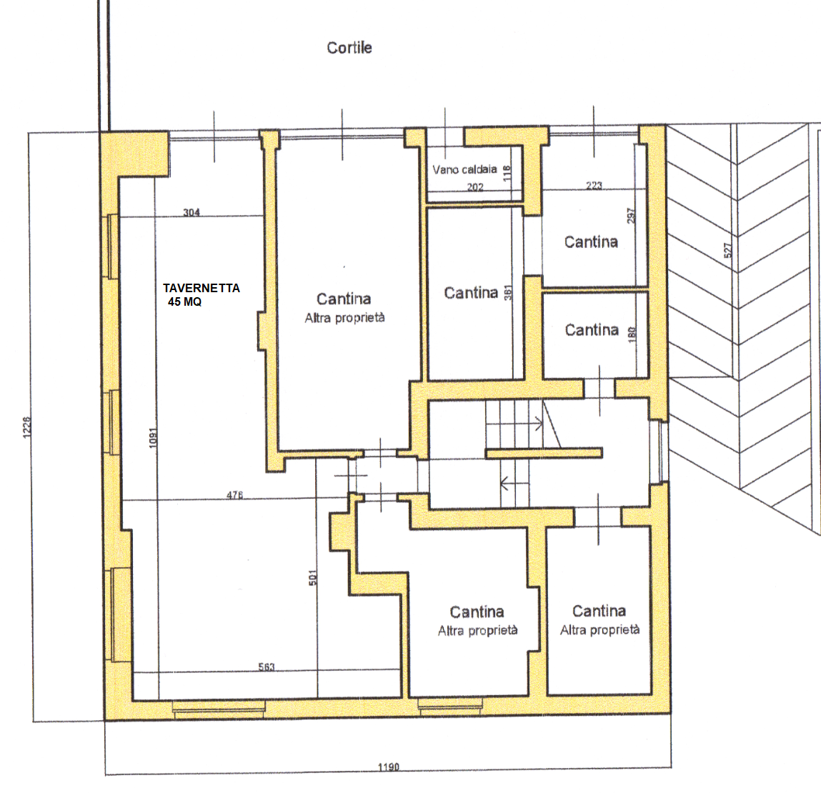 Room on the ground floor 45 m2 with heating can be connected with a spiral staircase to the apartment.