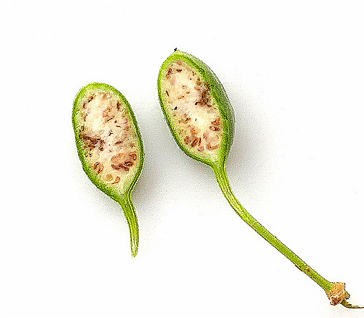 Caper berry: the elongated fruit of the caper bush, edible after preservation, milder in taste than the bud