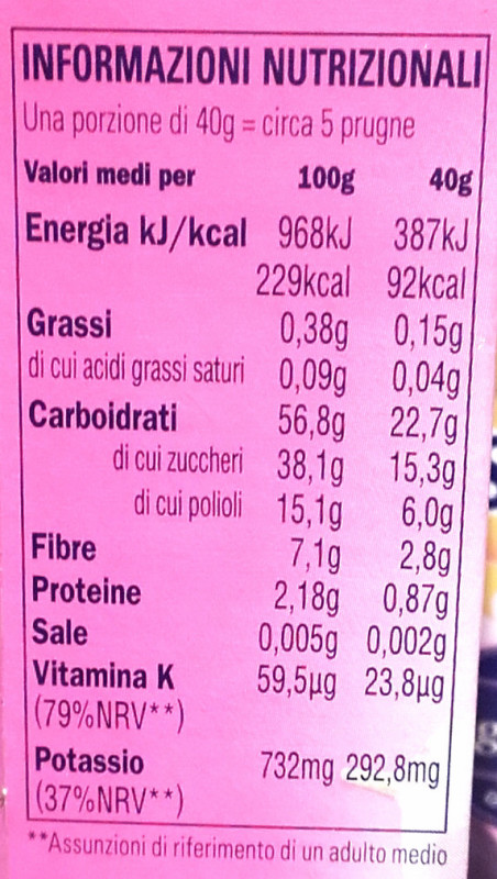 Barcode EAN:   0070450020972 Energy kcal/100g:   229 Satured Fat (per 100g)g:   0.09 Sugar into Carbohydrates (per 100g)g:   38.1 Proteines (per 100g)g:   2.18 Calcium CA/ mg (per 100g)g:   Gluten:   Production type:   Made in:   United States Bought here:   Last update:   2019-11-15 18:57:33 | Brand:   Fat (per 100g)g:   0.38 Carbohydrates (per 100g)g:   56.8 Fiber (per 100g)g:   7.1 Salt - Sodium (per 100g)g:   0.005 Ingredients (Indicative):   Price €:   |