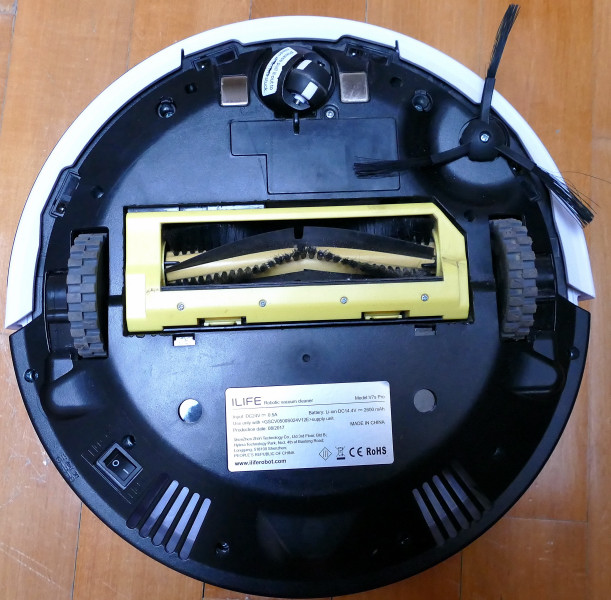 Battery. On the bottom, in a closed compartment with a screw, there is a 2.5 Ah battery. If you leave the robot standing for more than 1 day, the battery will be completely discharged. Unless you move the switch on the bottom to zero. But then, will you remember?