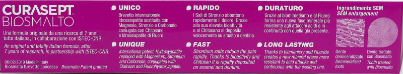 First of all a peculiarity: the package, a tube similar to all toothpastes on the market, is only 50ml, while almost all other packages are 75ml. This detail is important as it is directly reflected in the price.