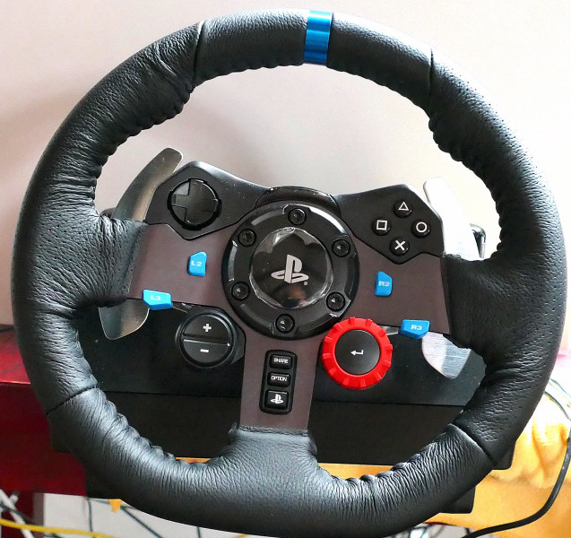 The G29 wheel features various buttons and controls, including D-pad buttons, a rotary dial, and paddle shifters, allowing you to navigate menus and control in-game functions without needing to reach for a keyboard or controller.