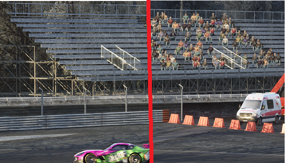 As you can see from the image, there is no comparison between the car's adherence to reality and the crowd. The spectators look like newspaper clippings.