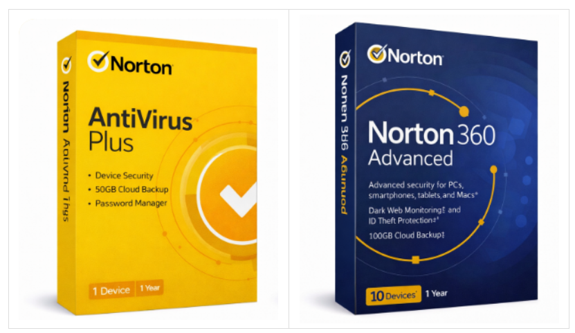 Norton is a long-established name in consumer cybersecurity, offering a range of products that include Norton AntiVirus Plus and the broader Norton 360 family (Standard, Deluxe, Advanced). These solutions are designed to provide multi-layered digital protection for individual users and households across multiple devices.