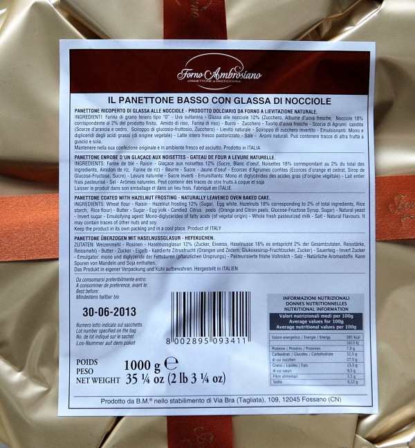Barcode EAN:   8002895093411 Energy kcal/100g:   385 Satured Fat (per 100g)g:   9.5 Sugar into Carbohydrates (per 100g)g:   27.5 Proteines (per 100g)g:   7 Calcium CA/ mg (per 100g)g:   Gluten:   Production type:   Made in:   Italy Price €:   Bought here:   Last update:   2013-01-20 17:54:38 | Brand:   Fat (per 100g)g:   15.5 Carbohydrates (per 100g)g:   52.5 Fiber (per 100g)g:   3.5 Salt - Sodium (per 100g)g:   0.12 Ingredients (Indicative):   |