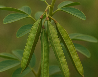 After pollination, the plant produces flat, slightly curved pods, which turn from green to yellow-brown or dark brown at full maturity and contain multiple flattened seeds. Leaves and pods are harvested, dried and selected to obtain a botanical material concentrated in anthracene glycosides (sennosides), which are responsible for the characteristic stimulant laxative action. The dried drug appears fragile, with thin leaflets and papery pods, has a faint herbal odour and a distinctly bitter, somewhat harsh taste, clearly unsuitable for normal culinary use.