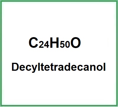 Thus, Decyltetradecanol is a molecule consisting of a chain of ten carbon atoms attached to a chain of fourteen carbon atoms with a hydroxyl group at one end. The 2- in 2-decyltetradecanol indicates that the decyl group is attached to the second carbon atom of the tetradecyl chain.