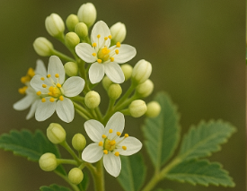 Boswellia serrata is a tree native to the arid regions of India, belonging to the family Burseraceae, and it is best known for the precious aromatic resin it produces. Its appearance is modest yet resilient: a pale, sometimes flaky trunk, knotty branches, and compound leaves of a soft green, slightly serrated along the edges. During the warm season, the tree bears small, pale flowers, while the sap that seeps out from incisions in the bark slowly solidifies, forming hard, fragrant drops with yellowish to amber tones.