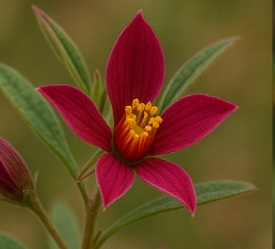 The rhatany is a perennial plant of South American origin, belonging to the Krameriaceae family, best known for its woody, reddish roots, rich in astringent substances. It grows wild in the arid environments of the Andean regions, especially in Peru and Bolivia, where it sinks long, sturdy roots into dry soil. The aerial parts are modest: small, slender branches, reduced grey-green leaves, and elegant pinkish flowers that stand out against the essential habit of the plant.