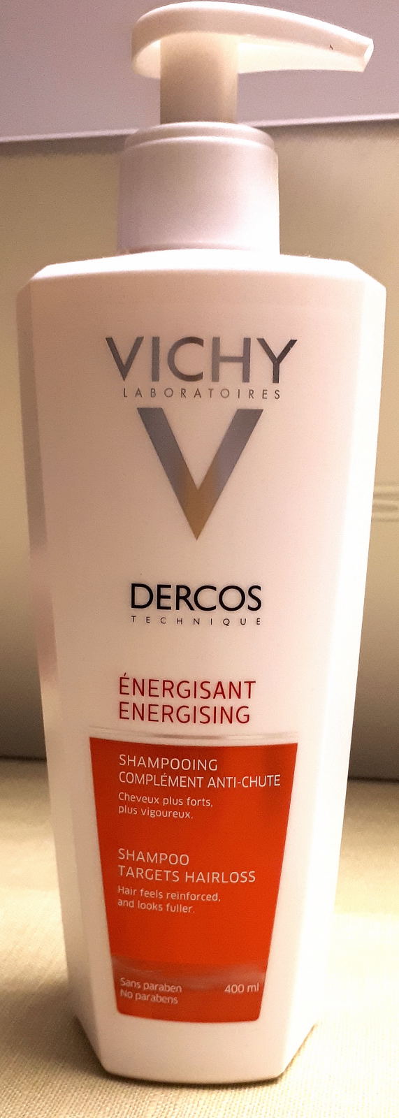 VICHY DERCOS Energisant in liquid gel form is packaged in an appealing 400 ml plastic bottle with a dispensing cap. The dispensing cap provides the right amount of shampoo and is very functional with a smooth movement.