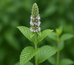 Mentha arvensis, commonly known as field mint or corn mint, is a perennial aromatic species of the Lamiaceae family. It shows the typical morphology of the genus Mentha, with quadrangular stems and vigorous creeping rhizomes that allow rapid spread. The leaves are opposite, ovate to slightly lanceolate, finely pubescent and intensely mint-scented. Flowers are usually lilac to pink, arranged in characteristic whorls in the leaf axils. The aroma is strongly mentholated and notably pungent, due to the high menthol content of its essential oil.