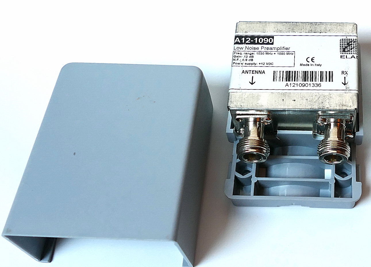 The A12-1090 is a low-noise preamplifier that boosts the receive signal of the S/ADS mode B beacon used by aircraft on the 1090 MHz frequency. The frequency range starts at 1030 MHz and ends at 1090 MHz. The result is very good: low noise and a clear increase in signal. I used it with two Kinetics receivers and the results were as good as expected. However, as with all radio reception, remember to place the antenna as high as possible (if there are hills or houses nearby) and the preamp as close to the antenna as possible. As I said before, you will notice a much cleaner and higher signal. In my case the s/meter scored 5/6 without the preamp and s9 with the preamp switched on on strong signals, while I picked up signals with the preamp that were undetectable without the preamp. It has a waterproof ABS case for mounting on poles with a maximum diameter of 44 mm.