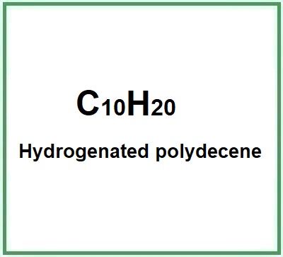 Hydrogenated polydecene is a natural product, a polyolefin hydrocarbon (belongs to the polymers, macromolecules monomers of olefins derived from the polymerisation of natural gas or oil) obtained chemically, i.e. synthesised through a hydrogenation process. It is a polyene, with simple hydrocarbon structures with no functional groups other than alkenes or alkanes, produced by the polymerisation of vinyl monomers such as alkenes or olefin and obtained from the hydrogenation of polydecene. It is a polymeric ingredient using an ethylene unit.