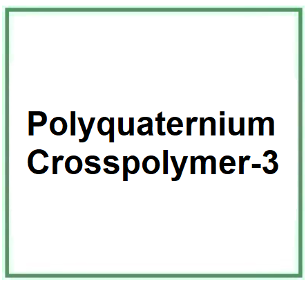 Polyquaternium Crosspolymer-3 è un composto chimico, composto polimerico di ammonio quaternario formato da cloruro di trimetilaminoetilmetacrilato e PEG-45 reticolato con metilene bis-acrilammide. In sintesi, il "Polyquaternium Crosspolymer-3" è un polimero cationico con legami trasversali utilizzato in prodotti cosmetici per le sue proprietà condizionanti e viscosizzanti.
