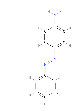 Solvent Yellow 1 is an aromatic azo compound with the chemical formula C12H11N3. It consists of two benzene rings connected by an azo group (-N=N-), with an amine group (-NH2) attached to one of the benzene rings. The azo bond is responsible for the dye’s characteristic yellow color, and the aromatic structure gives the compound its stability. The presence of the amine group makes the compound reactive under certain conditions, leading to potential breakdown into aromatic amines, which are known to pose health risks.