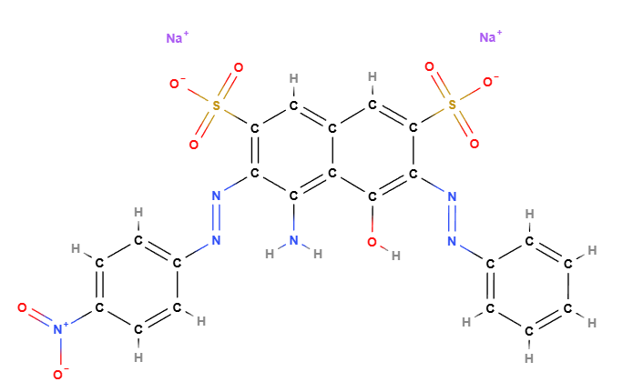 Restricted cosmetic ingredient as IV/46 a Relevant Item in the Annexes of the European Cosmetics Regulation 1223/2009. Substance or ingredient reported: Sodium 4-amino-5-hydroxy-3-[(4-nitrophenyl)azo]-6-(phenylazo)naphthalene-2,7-disulphonate