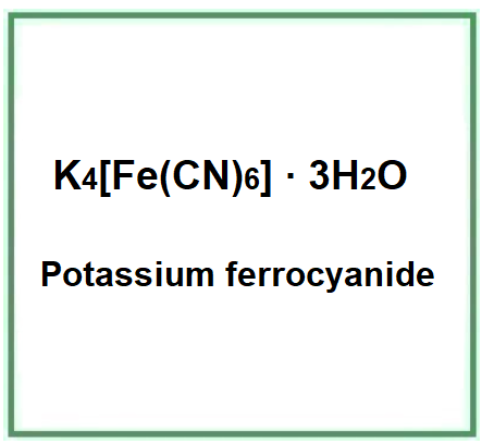 Potassium ferrocyanide is a chemical compound obtained by the reaction of sodium ferrocyanide with calcium hydroxide and potassium chloride. It is a non-toxic cyanide.