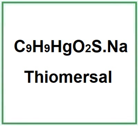 Thimerosal or Tiomersal or is an organomercury compound that comprises 49.55% (w/w) mercury in its structure and degrades to produce thiosalicylic acid, dithiobenzoic acid and ethylmercury (1).